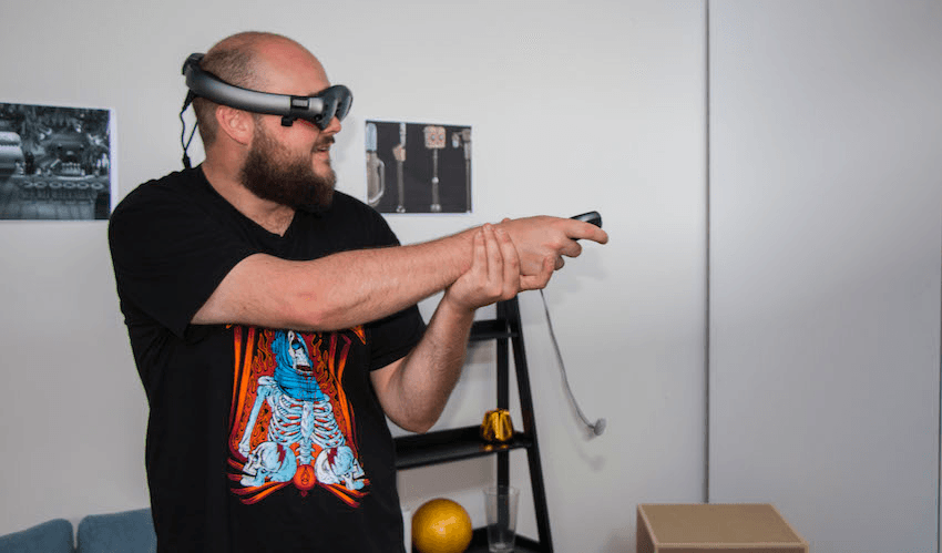 After years suffering VR headsets’ unwieldy bulk and complexity of set-up, my first surprise was discovering just how compact and light both the headset and its computing unit are. The entire unit is run off a battery and computing pack that is scarcely wider than a mug and is designed to be clipped to your belt or back pocket. After doing so and putting on the headset, the whole set was so weightless that it was quite easy to forget I was wearing a device at all – until robots started crawling through the walls.