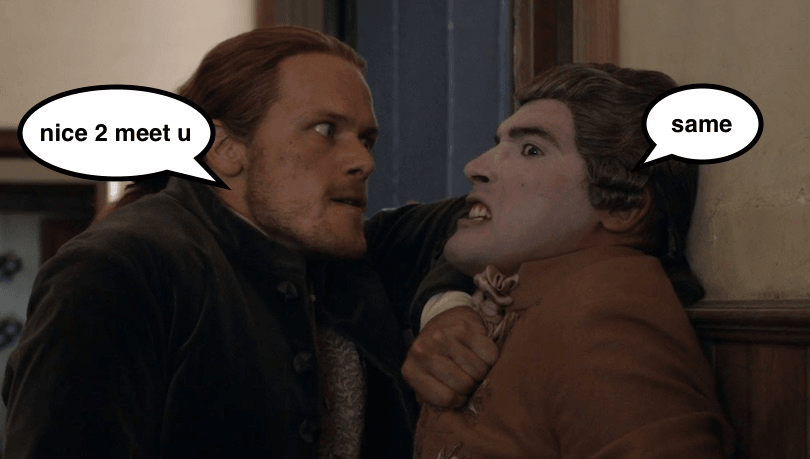 Let’s also put Philip Wyllie into lockdown, a new character who appears to be a human version of one of Roger’s poo pails. This cad joined the colonial hoi polloi at Jocasta and Duncan Innes’ wedding festivities, and left as a pawn in Jamie and Claire’s plan for revenge against Stephen Bonnet. Jamie plans to unleash a firestorm of revenge on Bonnet, but if I was the Frasers I’d be running straight to a field of strawberries and hunkering down in an Idiot Hut made of toilet rolls, rather than looking for trouble with a man who cuts people’s faces up for fun.