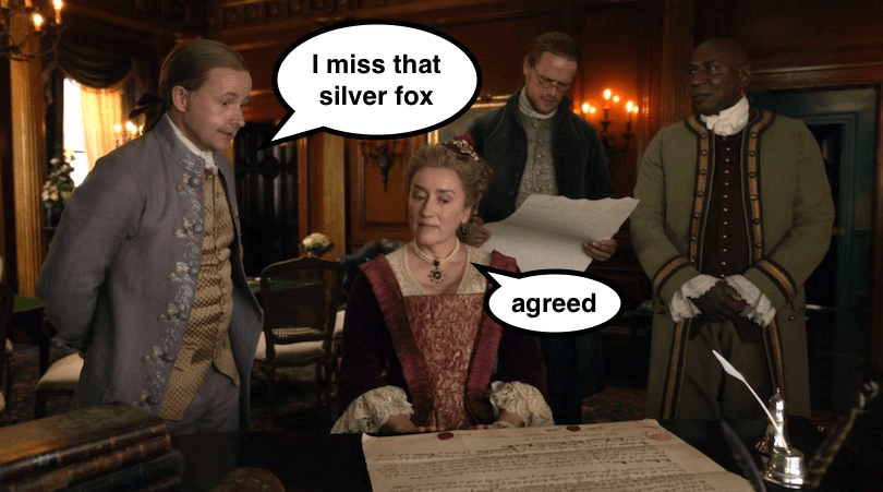 Phillip Wyllie was a piece of work, assaulting Claire in the stables and then taking a bet with Jamie to save his pride or win a horse, or something. Jamie risked both of Claire’s wedding rings in the card game, a move so audacious that Claire’s curls began to seethe with the ignomy of it all. Things were tense between Mum and Dad, despite the wedding being open bar and Lord John Grey dancing like nobody was watching. Will we only see Lord John at weddings this season? Asking for a friend.