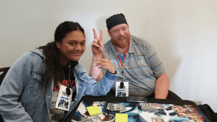 Another battler’s entourage comes to the WAR party with only love in their hearts. Making his major debut, 17-year-old Josiah ‘HartyLawnMower’ Rimaha is shy and unsure of the landscape when we meet, though clearly itching to play. Next time I see him, he’s descending from the stage and trying, unsuccessfully, to contain his joy at winning his bout.