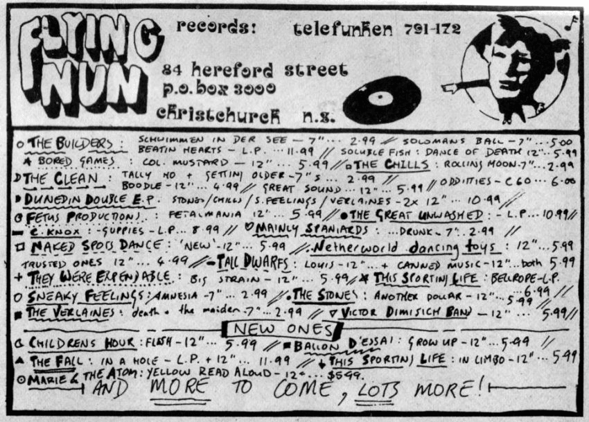 Sounds Unlimited was a well-run company and a prompt-paying customer. And there would be all these Fall fans around the world who would now know there was an interesting record label in New Zealand called Flying Nun. It irked a little that they would know it for a non–New Zealand artist’s release, but never mind. I was already fantasising about a summer holiday.