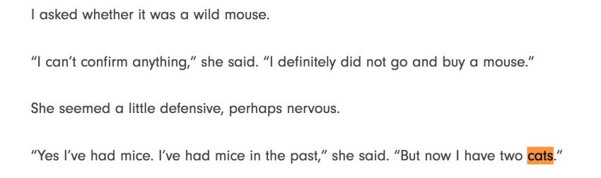 It is currently unclear what caused Brian and Christine to be emancipated from the Ridge dynasty and eventually put up for adoption through an organisation dedicated to rehoming “stray and abandoned” cats. We are able to confirm that the cats were still in Sally Ridge’s care in June of 2016, as reported in this story about The Ridge’s infamous ‘mouse in the kitchen’ scene.