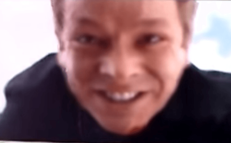 It looks like he is either about to burst a blood vessel or die of bee stings to the face, or both. Is he smiling? Is he laughing? Is he Denver the guilty dog? Is he Penguin from Batman? Why is one of his eyes looking in a different direction? Even in the shittiest quality imaginable, it’s still one of the funniest and scariest things I’ve ever seen. Five stars.
