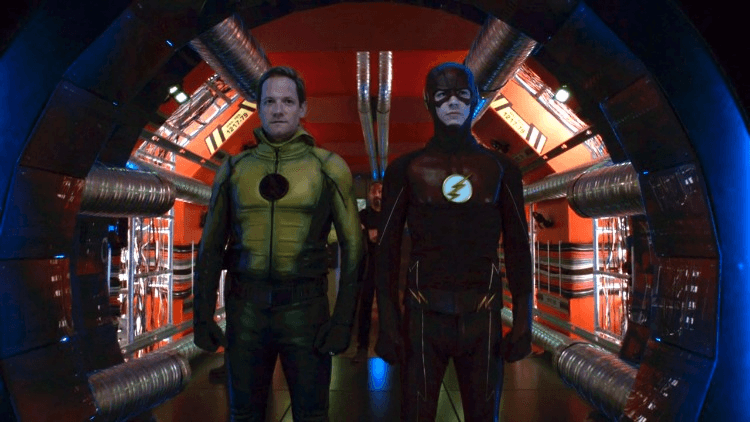 There was this episode in season two of The Flash and we were supposed to be side by side through the speed force, and one pulls ahead of the other and then the other one pulls ahead, so it looks like a race.