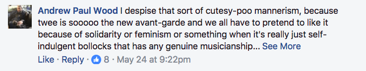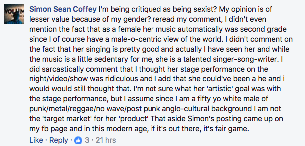 ‘It’s not because she’s a women, okay. Sweetman is an equal opportunity troll. He exaggerates his opinions on music from all kinds of people to get clicks. He’s colour-blind. Gender-blind too. I mean he went after Six60 and Robbie Williams. The integrity! The bravery! Nothing to do with gender. Just like that time he wrote that people who liked Lorde liked her like they like Farmers lingerie models or that there was something ‘fishy’ about her success because she had, wait for it, co-writers and a producer and a record label. Nothing to do with gender, mate. Just God’s honest criticism. What is it with these musical snowflakes who can’t stand engaged critiques? Millennials are ruining everything! Kate Bush didn’t complain when she was coming up and her success was attributed to that dude from Pink Floyd. Why can’t these women be as grounded and authentic and non-posturing as Kate Bush? She’s great. Did I mention I own her four “classic” LPs on near-mint New Zealand pressings? Love Kate Bush! Francoise Hardy, too. Nothing to do with gender, mate.’