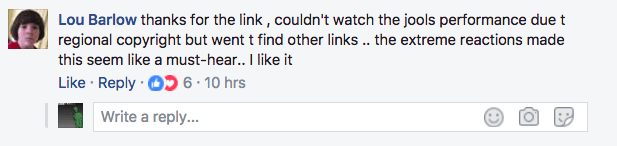 Last week music blogger Simon Sweetman reviewed Aldous Harding’s album Party with a video of goats screaming. Then, a couple of days ago, he added to that critique with a Facebook post of Harding’s Jools Holland performance with the comment “I take it all back, this is amazi…sorry, I couldn’t finish that without laughing…”