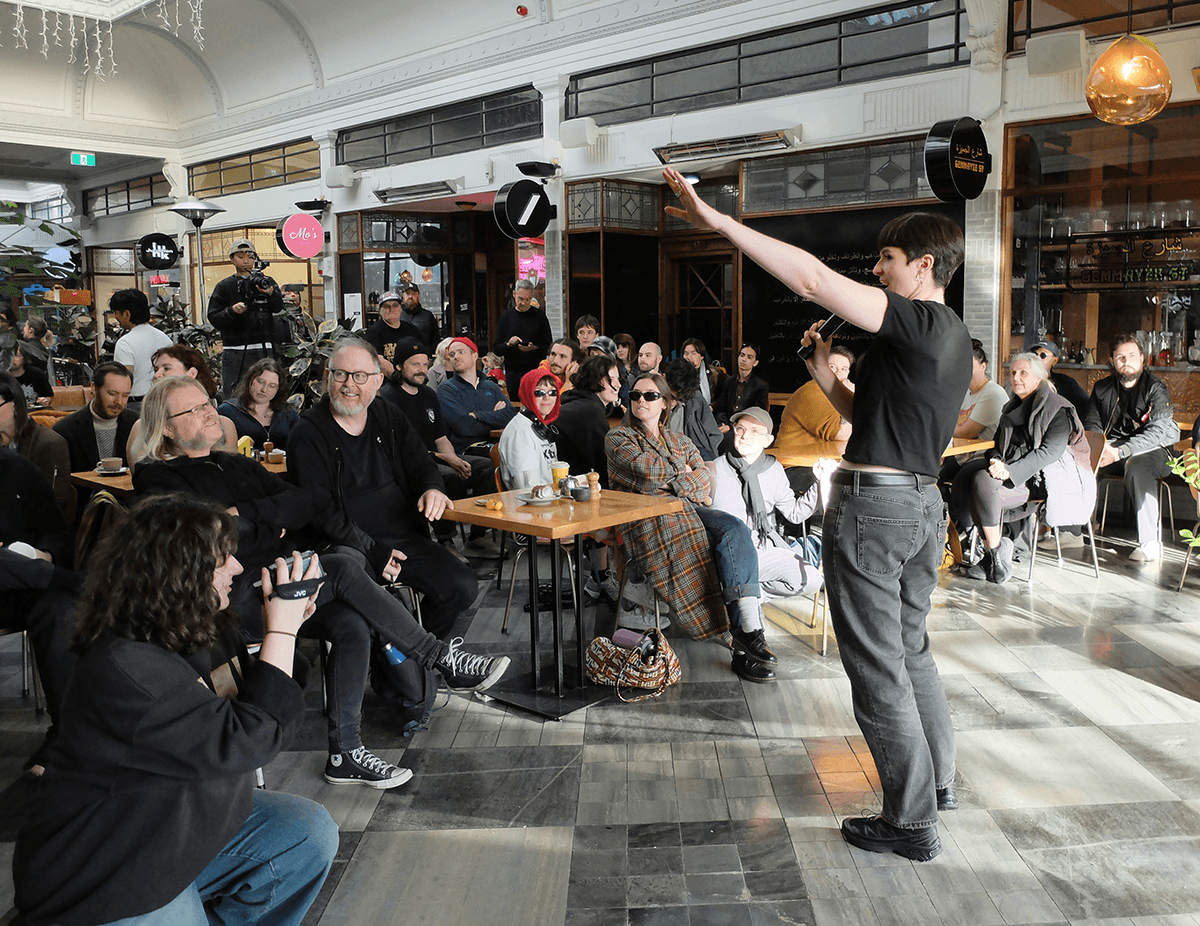 Leaving is probably a relative term if you think of 95bFM as a community as she does. In a way, she isn’t leaving – you’ll still find her at gigs on K Road. And she’s already started another project with friends, a video podcast titled In the pits, which “very loosely explores music venues in Aotearoa, and not just music venues, but also spaces that facilitate music making and creative making and stuff.” In the first episode they visited the soon-to-be-renovated and renamed Wine Cellar, and talked to longstanding legend Rohan Evans. We can also expect her freelance music writing to continue.