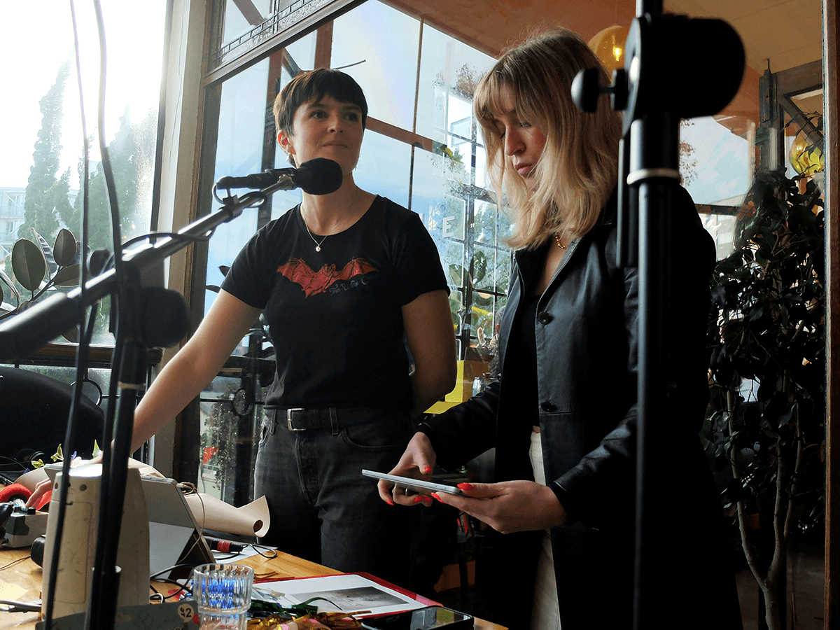 The following Friday, it will anything but. Ashby and Huggins will host the show live from Bestie Cafe in Karangahape Road’s St Kevin’s Arcade. Every stool and chair will be taken, and standing people will cluster around the makeshift stage and the mixing desk pressed into the side. They’ll bob and sway when Jim Nothing and cc(tv) play live sets. Some of them will swing at pinatas Hobby Goblins have made, pushing them dangerously close to the handblown glass lampshades. Kinder Surprise eggs will splutter out, half crushed. Ten people will line up with party whistles to play a second guessing competition, when just half a second of a song is played and then guessed. Alex will successfully guess a song by The Clean, winning a Breakfast with Rachel T-shirt that features a tiny Ashby in a tank next to a goldfish, which the pair have deduced must be Huggins.