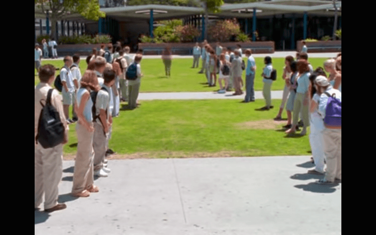 BUT! This is after Carmen reads the names of those who got into the squad and runs through a crowd of people. In a genius filmmaking move, Carmen LITERALLY fades as the crowd splits for her.