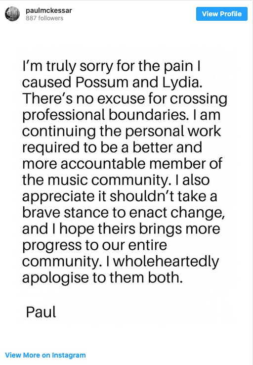 Paul McKessar himself made a statement on Instagram apologising for “crossing professional boundaries” (he later deleted his Instagram account), and handed back his Aotearoa Music Awards Manager of the Year 2020 award.