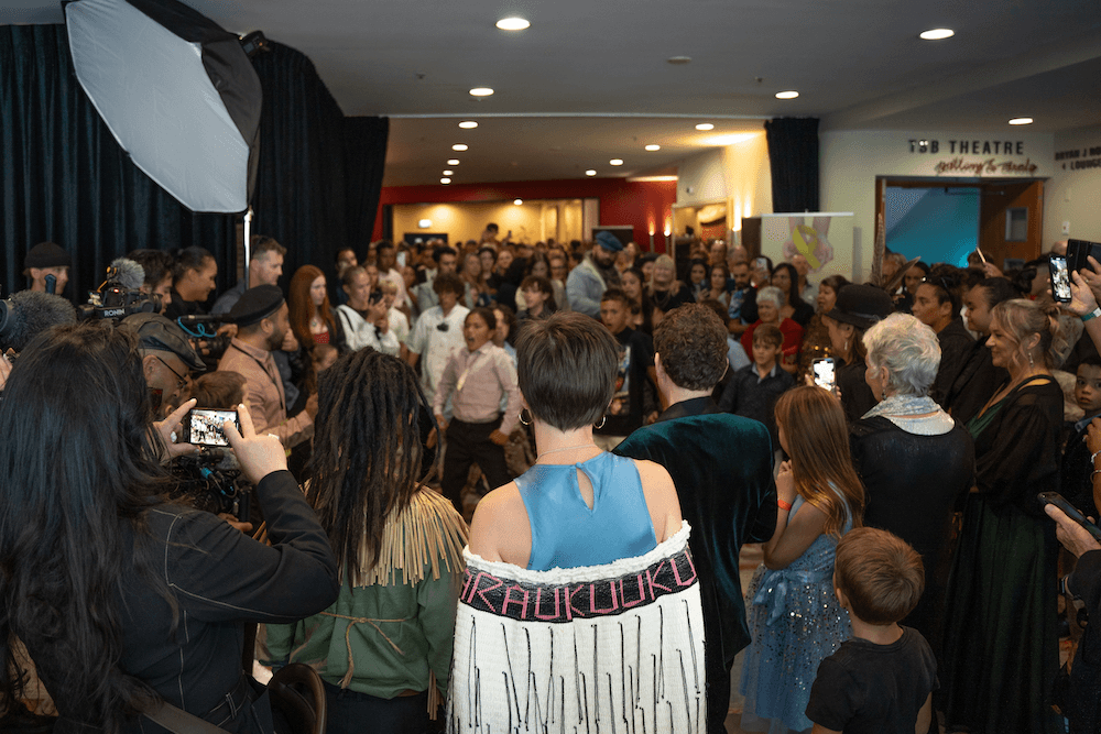 Atkinson and House’s Taranaki tribes being proud of The Mountain was on full display during the film’s New Plymouth premiere on Tuesday, March 19. The director explains that rangatira from Ngāti Mutunga proudly led key cast and crew “through the theatre and onto the stage.” At the premiere, Atkinson proudly wore her nan’s korowai, which includes a special pink pigment from a flower endemic only to Taranaki.