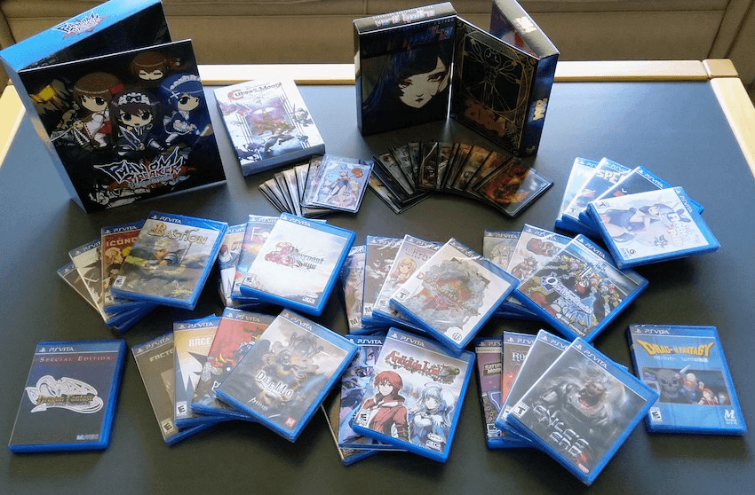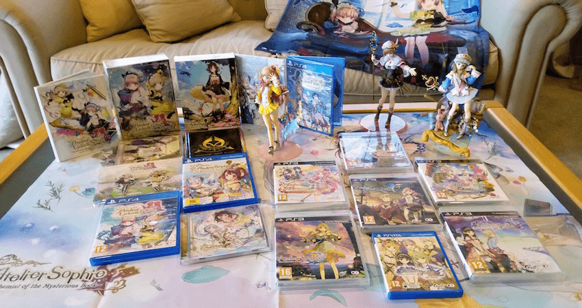 In those days – with internet connections still slow – I bought most of my PS3 games on disc; that way I discovered the joys of gradually accumulating a library, rounded out with Atelier artbooks, decorative cloths and figurines. In 2013 I purchased a Playstation Vita, and that sealed my fate as a dedicated handheld gamer and collector. I soon realised the pitfalls of digital distribution for a poorly supported console and shifted to buying Vita games in their cartridge format wherever possible.