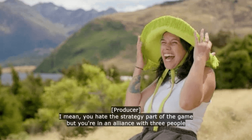 Blair had a hell of a week, shapeshifting through several identities including “Blair Grylls”, “The Guy from Shortland Street” and “Zaddy”. After eliminating Matootles and winning a mysterious scroll, Zaddy had more power in the last two minutes of the week than he’d had all game. “How through the wheel of time things change,” he mused, possibly thinking about his next strategic move, but probably remembering the night he got up to pee and panicked about being bitten by werewolves?!?!