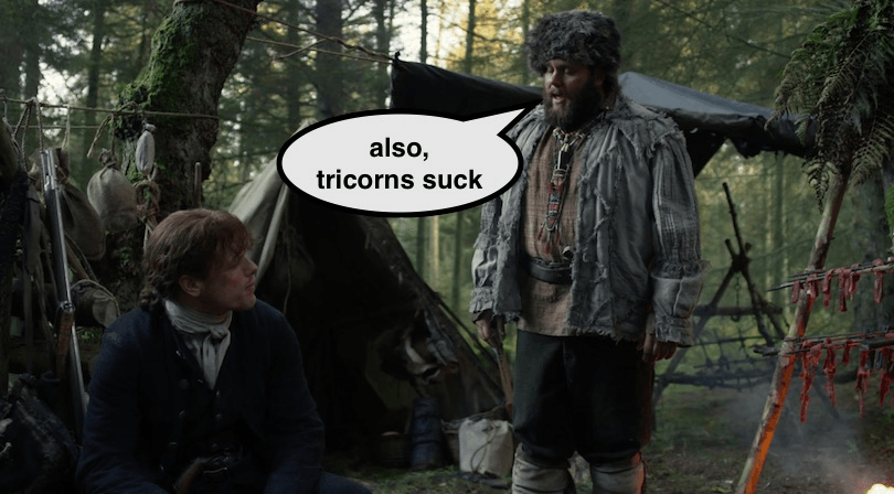 I’m just glad Jamie wasn’t wearing his tricorn. I’ve got a soft spot for that hat, and it would have tipped me over the edge into an emotional chasm of my own undoing.