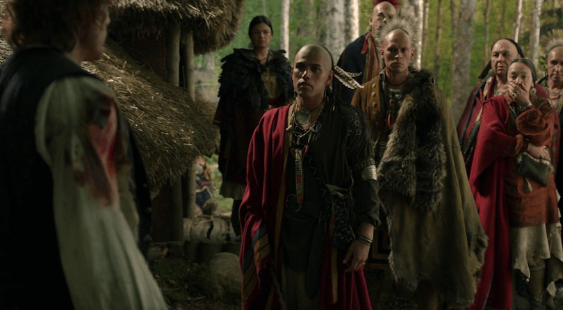 Back on Fraser’s Ridge, Jamie and Claire’s domestic bliss was interrupted by visits from the Cherokee, who were unhappy at the colonial shenanigans taking place on their ancestral lands. “It’s a message,” warned hairy mountain man John Quincy Myer. “Next time, they might not be so courteous.”