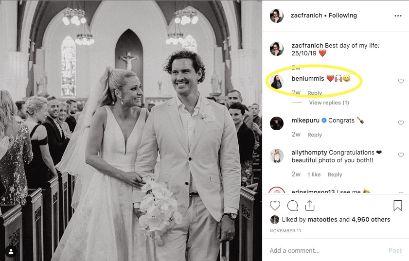 Where to begin with the glossy exclusive Woman’s Day wedding details? $10,000 worth of alcohol? Hand-painted umbrellas? A final rose at the altar? Samuel Levi AND Simone Anderson in the crowd AND Ben Lummis in the comments? Be still my beating heart. Don’t even get me STARTED on the fact that the reception featured both sausie rolls AND “party pies” AND came to a dramatic finale with Erin singing Lady Gaga’s ‘Look What I’ve Found’!!! Is this their wedding or my funeral? Really hard to say.