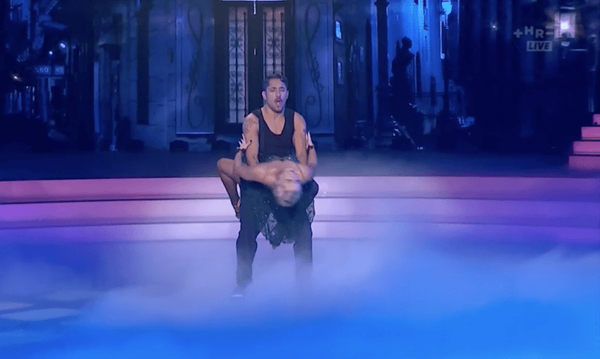 Secondly, Chris Harris is… awkward here. There’s goofy and there’s awkward – goofy is likeable and fun, awkward is hard to watch. Usually he splits the difference between the two, and the power of his Happy Dad charisma covers up any awkwardness, but when he’s meant to be projecting passion, drama and heat, the Happy Dad charisma falters a bit. He’s stiff, you can feel him doing the classic Kiwi awkward smile, and you can almost see him counting the steps until the whole thing is over.