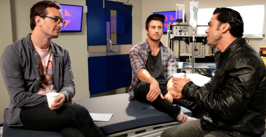 The day arrived: Friday, November 28, 2014. We were ushered into the dream spot: the hospital set. There were several hospital beds. There was the smell of meat, and Ben arrived. Cam bounced in by his side. They were both warm and excited. A dream pair for an interview that I will probably never top. We set the cameras up, put up a couple of lights, and then the three of us perched on a bed.
