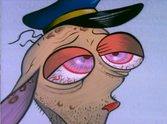 Ren and Stimpy also might have been my first inadvertent exposure to the horrors of methamphetamine addiction, as in one episode Ren stays up for days on end until he hallucinates cockroaches eating his eyelashes and playing poker in the fridge. Scary shit. But, most terrifying of all, are the still frames which from time to time depict the characters in extreme close up, veiny eyes and all, in a manner that only Spongebob occasionally comes close to.
