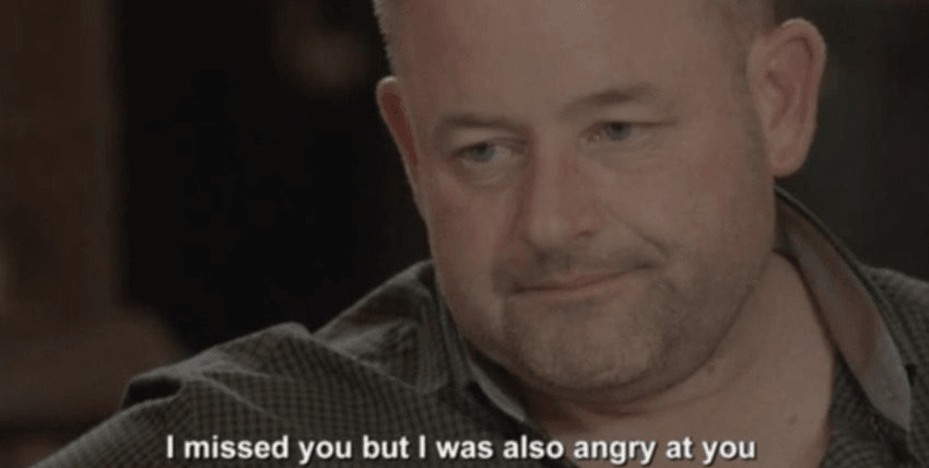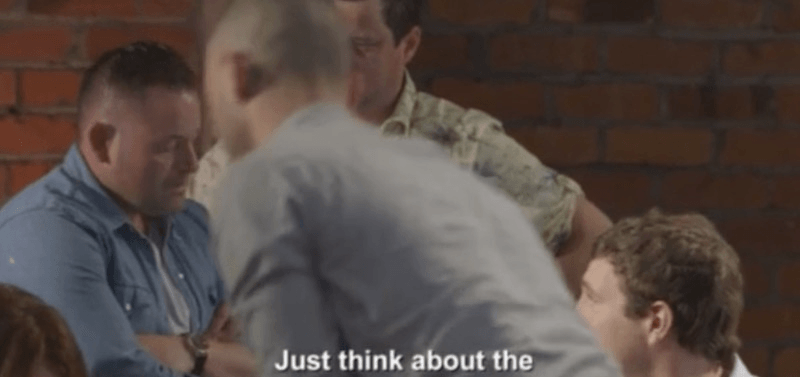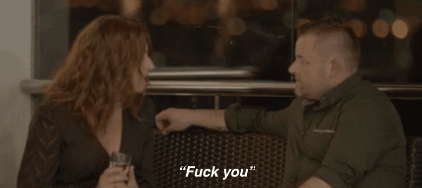 First of all: has anyone ever sworn anywhere near as much as Gareth at the reunion dinner? Swaggering in with his new forever-love Wayne, Gareth lovingly told his wife Ottie to “shut the fuck up” at the dinner table, before she threatened to pull his ponytail. Ahh, don’t you just miss those gooey, loved-up early stages of a relationship?