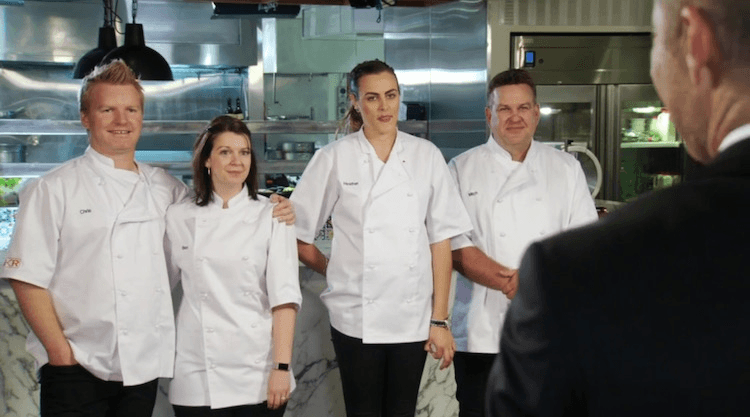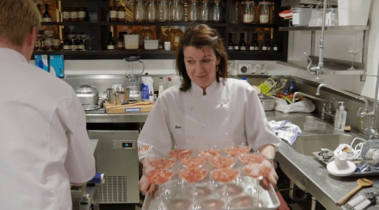 As if the teams need any added stress, a handful of friends and family have also been brought in and told to stand on the restaurant side of the open kitchen screaming encouragement all night long. Heather greets one of her friends by complimenting her on her “good spray tan!” – one of the greatest negs ever broadcast on New Zealand television.