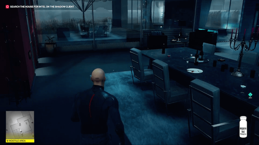 No self-respecting mansion-owner would let the tundra come that close to their outdoor furniture. Nor would they let their help leave their outdoor furniture out. Strike one, Hitman 2.