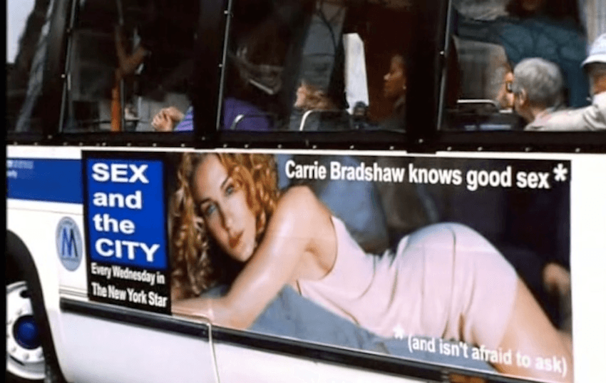 - Carrie, a sex columnist for an unnamed newspaper that vaguely resembles the New York Post, has her photo on the side of buses. Sex and the City is, once more, set in the 90s on planet Earth, not outside the boundaries of time and space.