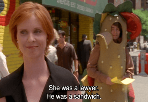 - Miranda is sexually harassed by a guy in a sandwich suit and ends up being strangely attracted to him.