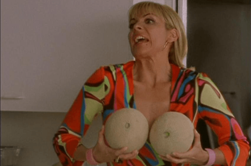 - Samantha throws a melon at her guests, as one does.