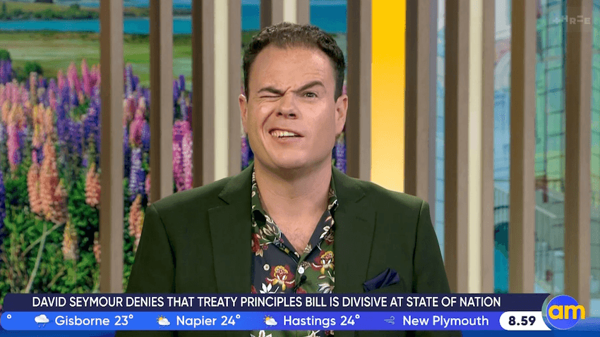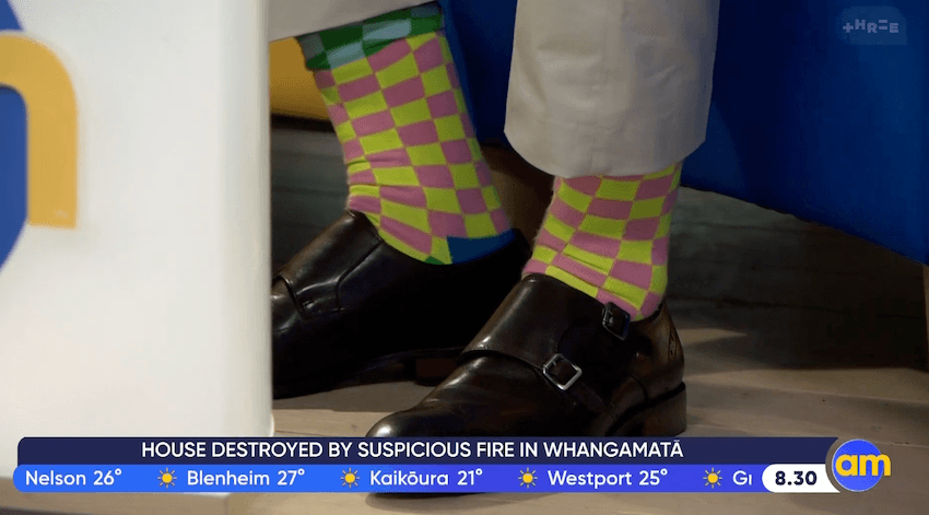 It’s not often that you get David Seymour and Chloe Swarbrick agreeing about anything on morning television, but a misstep from Burr during their political panel saw him suitably chastised by both. “Are you worried about being lynched at Waitangi?” he asked Seymour of his upcoming appearance. “I’d ask you to reflect on that language,” interjected Swarbrick, raising the historical context of the phrase in relation to our most marginalized population. “I would agree with Chloe there,” said Seymour, adding that he recently went to a Civil Rights museum and found Burr’s use of it inappropriate. Burr later apologised for his poor choice of words, but it was hard to hear over his loud socks.