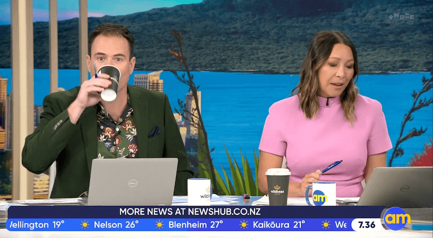 Reflecting on the departure of Ryan Bridge, Waiirua said “Ryan used to rub me up the wrong way… I mean literally.” Earlier, Burr said to Styrus “you’re a yummy granny”, referred to paywave repeatedly as “tap and gap” and a sponsored Wild Bean cafe segment ended with Styrus revealing her favourite spot for “a coffee and a perve”. Maybe all this pole dancing is to blame, but I haven’t seen live television this sexed-up since ‘come box’.