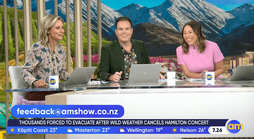 Rising groggily a week after their TVNZ counterparts, Three’s breakfast show AM returned to our screens this morning with a brand new co-host in broadcaster and Skytower scratch builder Lloyd Burr. “Finally, we are back” welcomed Melissa Chan-Green. “It’s lovely to be here,” added Burr, his big smile concealing a deep hurt – he still can’t seem to login to his work computer. It was a suitably shambolic start to three hours of early morning hijinks – here’s every weird, wonderful and notable thing you might have missed from AM’s first day back.