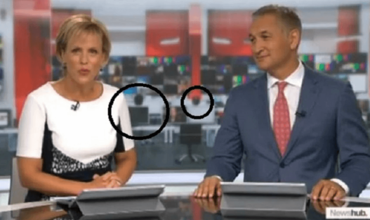 Hilary Barry and Mike McRoberts returned to the desk in a revamped studio, but something was amiss about the figures in the new background. “On the wall behind Hilary and Mike, a disturbing alternate drama was playing out: a depressing play about a newsroom in a dystopian future,” wrote Hayden Donnell for The Spinoff in 2016. “All three are men. They remain through the whole broadcast, staring unblinking at their computers.”