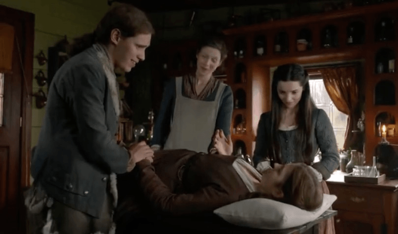 Back at Fraser’s Ridge, Claire continued to welcome the locals into her freaky cult of modern medicine by encouraging them to partake in recreational drug use. Lizzy and one of the Tonsil Twins were thrilled to be Claire’s medical guinea pigs for her DIY anaesthetic, as Malva watched on with fire in her eyes and mischief in her brain. There’s trouble ahead with Malva, and I’m guessing most of it will stem from Malva spying on Jamie and Claire playing thunderstruck in the barn.