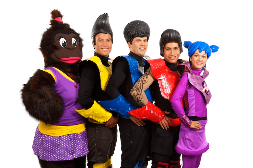 Tāmati Coffey, DJ Vinyl Richie, Charlie Panapa, Serena Cooper-Rongonui and Camilla the Gorilla