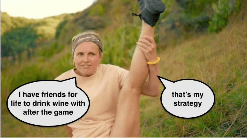 Anna admitted to dreading the alliances and “all that sort of stuff” in CTI, but give the woman some pirate pūtea, she’s playing the game with the best of them. In between keeping Richie sweet and the Katipō women sweeter, Anna pivoted from tactical chat to ovarian cysts in a single breath, just to keep Richie from finding out about the top secret Ovary Agreement. What tactics? No tactics here, your honour.