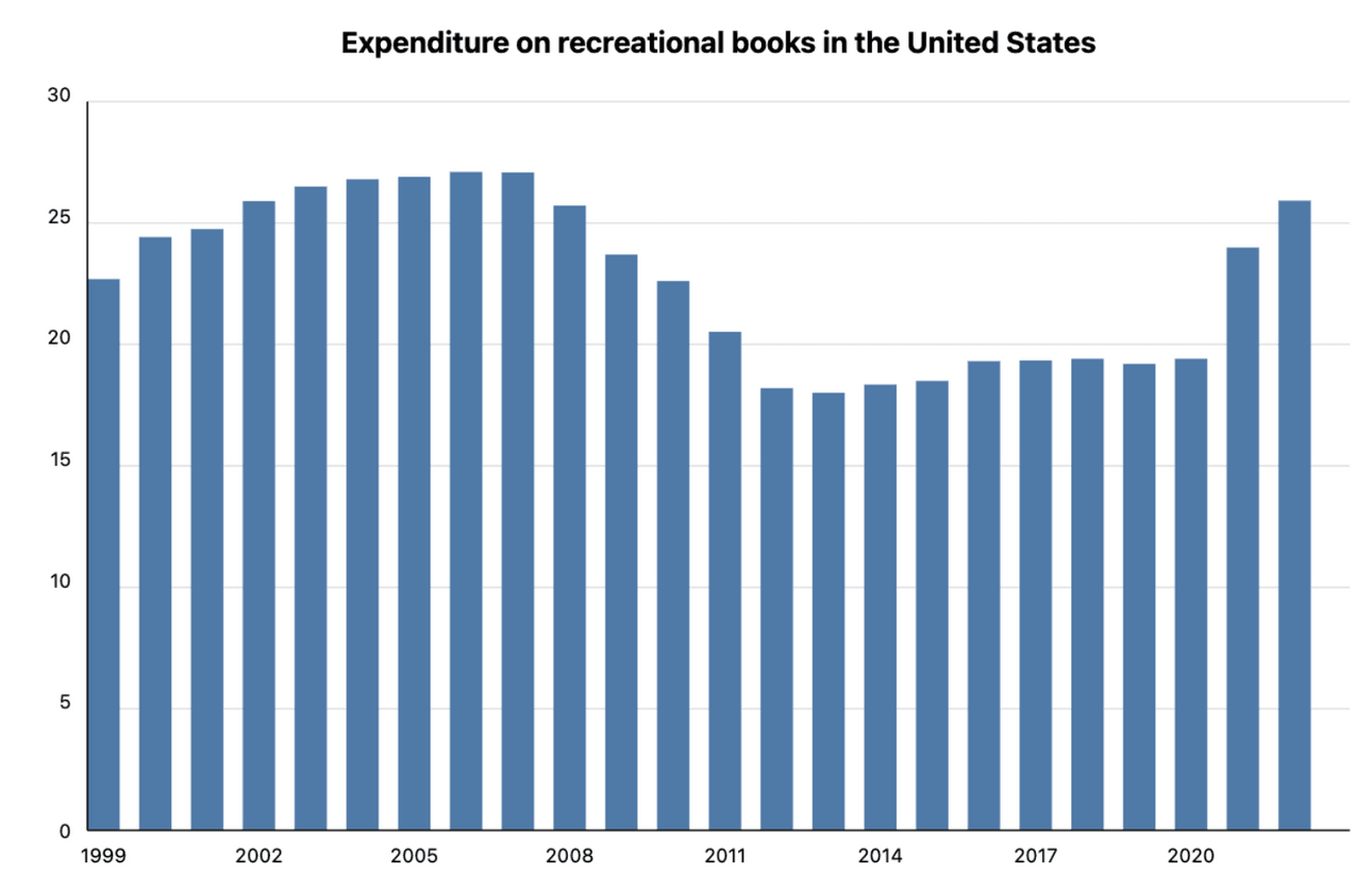 Revenue for books (even this is incomplete, as like-for-like figures aren’t public):