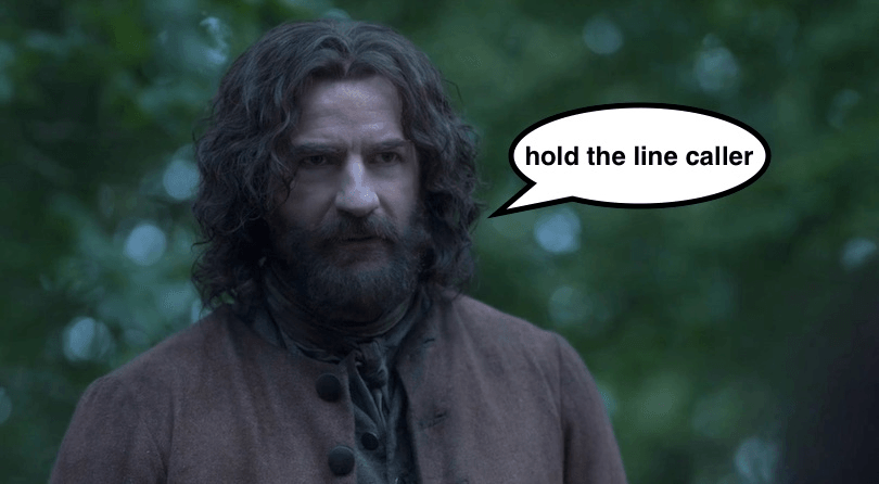 We are locked in a bubble of our own distress, we are self-isolating in a heavy cloud of emotion, we are washing our hands with our own tears. Murtagh is dead, and it’s not looking good for Roger, either. I’m sorry, but no. This is a time of crisis. Where are the funny goats? Where are the talking coconuts? Who said we could handle any more disasters, when the entire planet is already up the creek without an 18th century paddle?