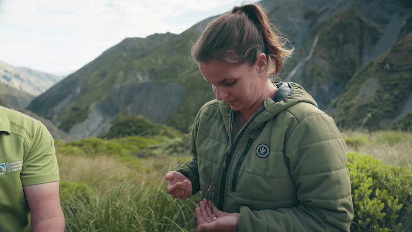 Her family moved around Te Waipounamu after her father – originally a fitter welder at Tiwai Point – decided to follow his dream of becoming a ski plane pilot. They ended up living in Aoraki Mount Cook National Park, and it’s no accident that the first episode of Endangered Species Aotearoa was filmed there. “I fought really hard for that,” Toki reveals, knowing the mountainous landscape would be an incredible character to launch the series. “The team got there, and they were like, ‘whoa’.”