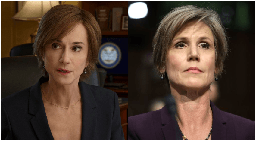 Who is she playing? Sally Yates was, at the time of Trump’s election, the United States attorney general, having been appointed by Obama. She served for 10 days as the acting attorney general, but was dismissed by Trump for insubordination when she stated that the “Muslim ban” of 2017 was not defensible in court.