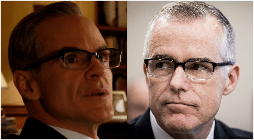 Who is he playing? McCabe was the deputy director of the FBI from 2016 until – and if you’re sensing a theme here, you might well be Sue Nicholson – he was dismissed by Jeff Sessions, the country’s attorney general at the time. You know that story about the dog who died the day before he retires from the police force? McCabe was literally 26 hours away from retirement when he was unceremoniously removed from the post. So that was basically his experience, without the joy of being a dog, or the burden of, you know, dying.