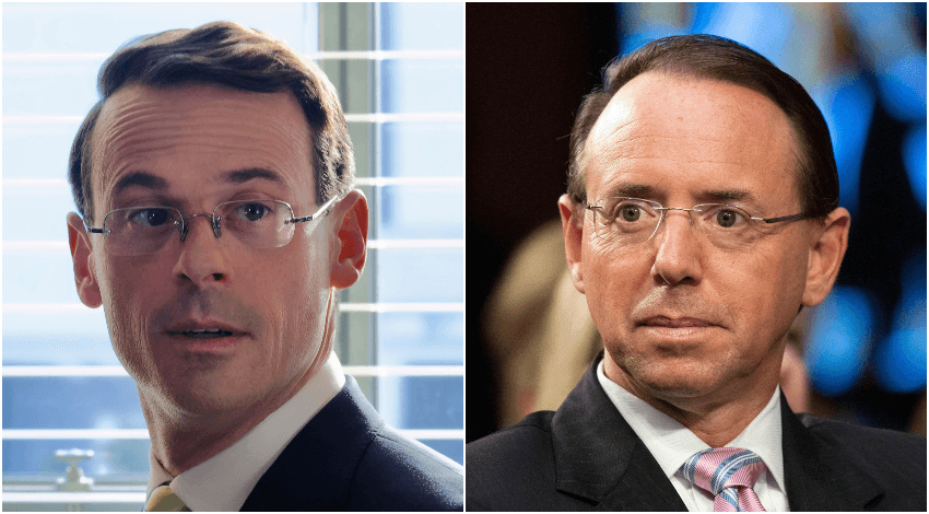 Who is he playing? Rod Rosenstein, who is mostly famous for his support of the Trump administration family separation policy, saying that the government “should not be categorically declining immigration prosecutions of adults in family units because of the age of a child”. He is, uh, probably a villain in this show, as in life.
