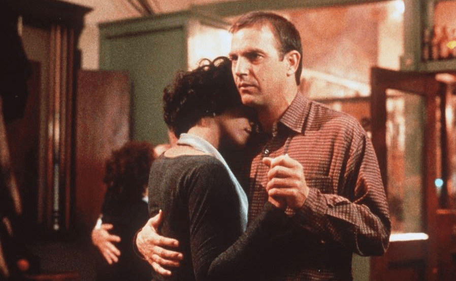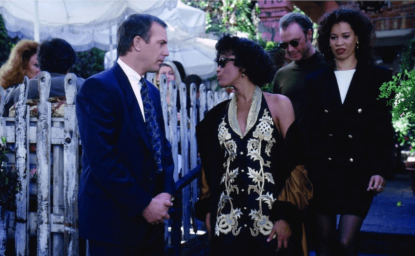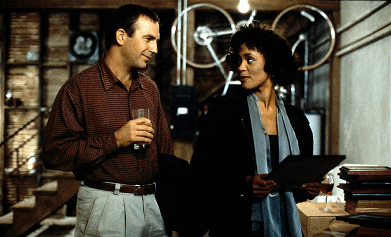 Let’s zoom out: The Bodyguard needs pretty much no introduction. It stars Kevin Costner as the titular bodyguard, Frank, a former Secret Service man who’s assigned to Whitney Houston’s Rachel, a star actress-turned-singer. Unprofessional shacking up definitely occurs. It was the second highest grossing film of 1992 and spawned the biggest selling soundtrack of all time, thanks to a few hit Whitney Houston songs.