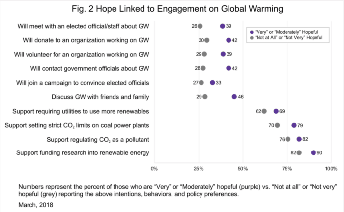 What I think the apologetic environmentalist is talking about is a debate inside climate activist circles about alarmism and hope. Every piece of research about climate messaging always finds the same thing. If you tell people we’re doomed – which is the apologetic environmentalists message – they’re less likely to take action than if you give them agency and tell them there’s hope. A 2018 Yale study illustrates this nicely.