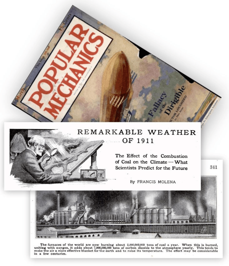 “COAL CONSUMPTION AFFECTING CLIMATE,” was the headline. “The furnaces of the world are now burning about 2,000,000,000 tons of coal a year,” it began. “When this is burned, uniting with oxygen, it adds about 7,000,000,000 tons of carbon dioxide to the atmosphere yearly. This tends to make the air a more effective blanket for the earth and to raise its temperature. The effect may be considerable in a few centuries.”