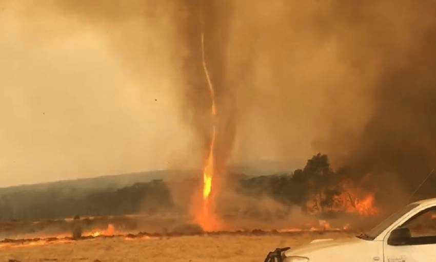 The altitude to which “pyro-cumulonimbus” clouds have risen above East Gippsland. When a bushfire grows large enough it begins to generate its own storm, which spreads the fire further via lightning strikes. One of these storms is responsible for the fire tornado spotted on Kangaroo Island, where two people have been killed.