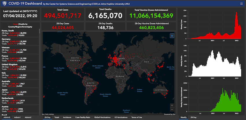 As countries have taken different approaches to deal with the pandemic, another thing that’s proved really useful has been the many Covid dashboards that have sprung up showing near real-time data for things like cases, hospitalisations, deaths, and over the last year or so vaccinations. One of the first dashboards to get up and running in January 2020 was by the Center for Systems Science and Engineering (CSSE) at Johns Hopkins University. It pulls data from a range of official sources – you can see the list for yourself here.