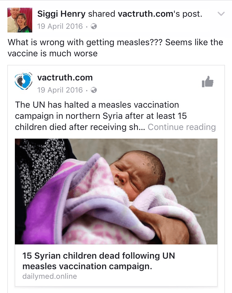 I figured it couldn’t get any worse than denying whooping cough kills (it can and does by the way, just ask the parents of little Riley Hughes) so out of curiosity I started to look at some of Henry’s other Facebook posts.