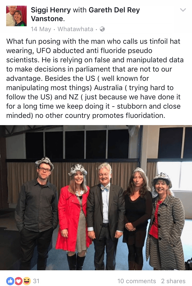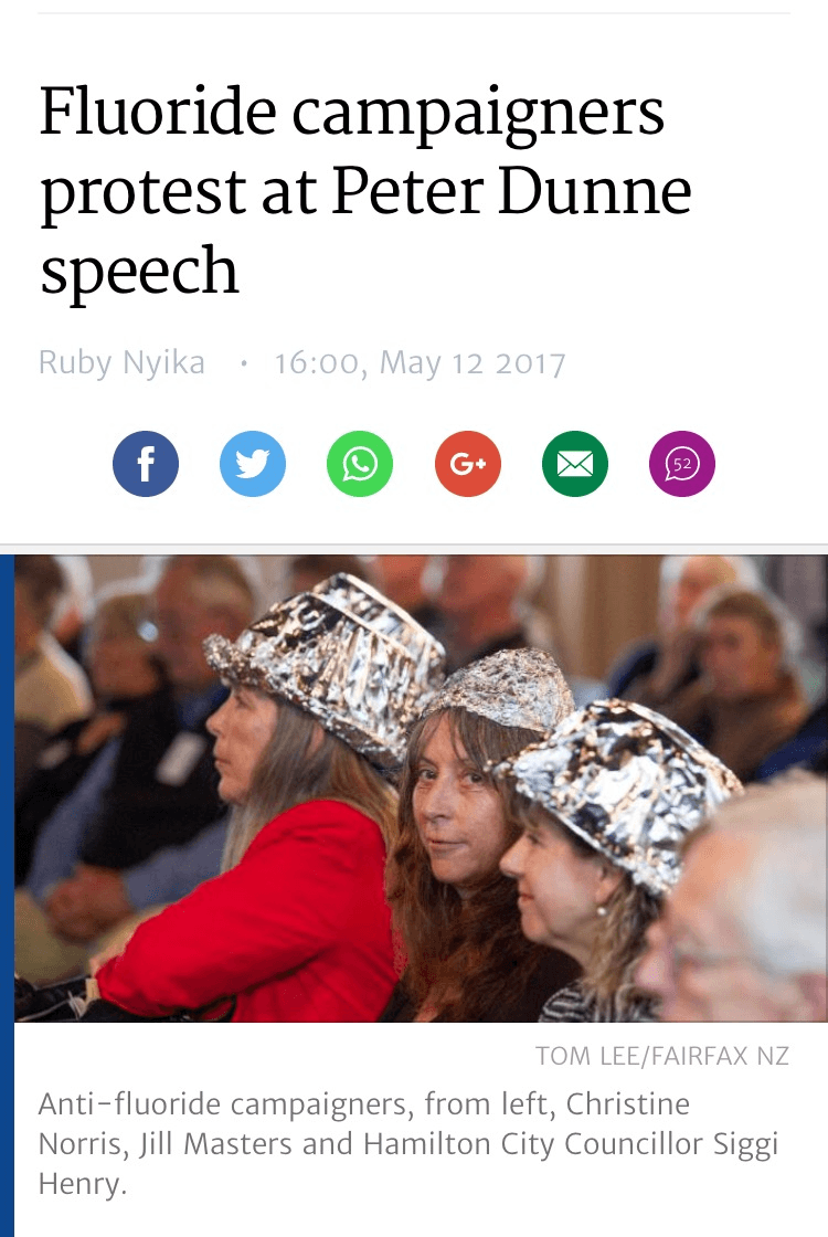 When Hamilton councillor Siggi Henry wore a tinfoil hat to meet associate health minister Peter Dunne lots of people had a bit of a giggle. She was wearing the tinfoil hat – literally tinfoil – because she had taken umbrage with the minister calling her and her fellow fluoride-deniers ”tinfoil-hat wearing… UFO-abducted pseudo scientists”.