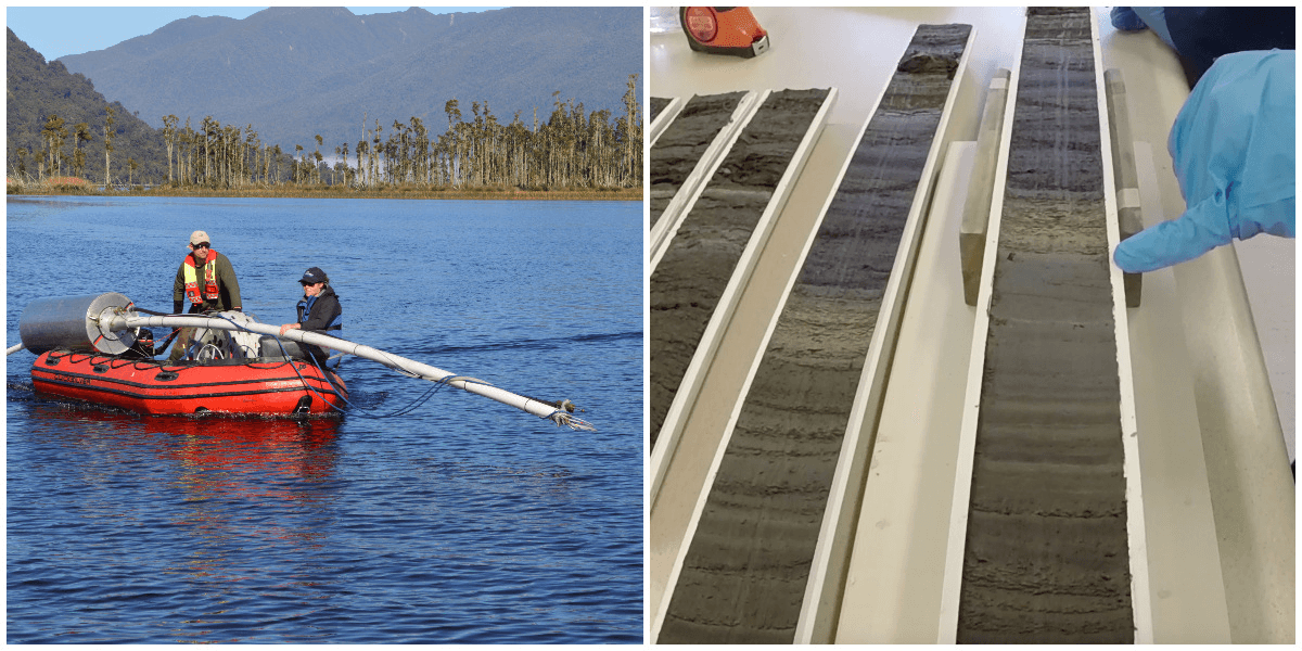 Enter the suite of West Coast lakes adjacent to the Alpine Fault – Kaniere, Mapourika, Paringa, Ellery. They’re not only superbly scenic, they also hold high-resolution earthquake records. Cores from the lakes reveal that normal sediments are frequently interrupted by shaking-induced underwater landslides and high influxes of sediments from landsliding in the surrounding hills – stark evidence of past earthquakes. Analysis of the last few thousand years shows that here, along the central section of the Alpine Fault, there’s a higher frequency of earthquakes – every 250 years on average.
